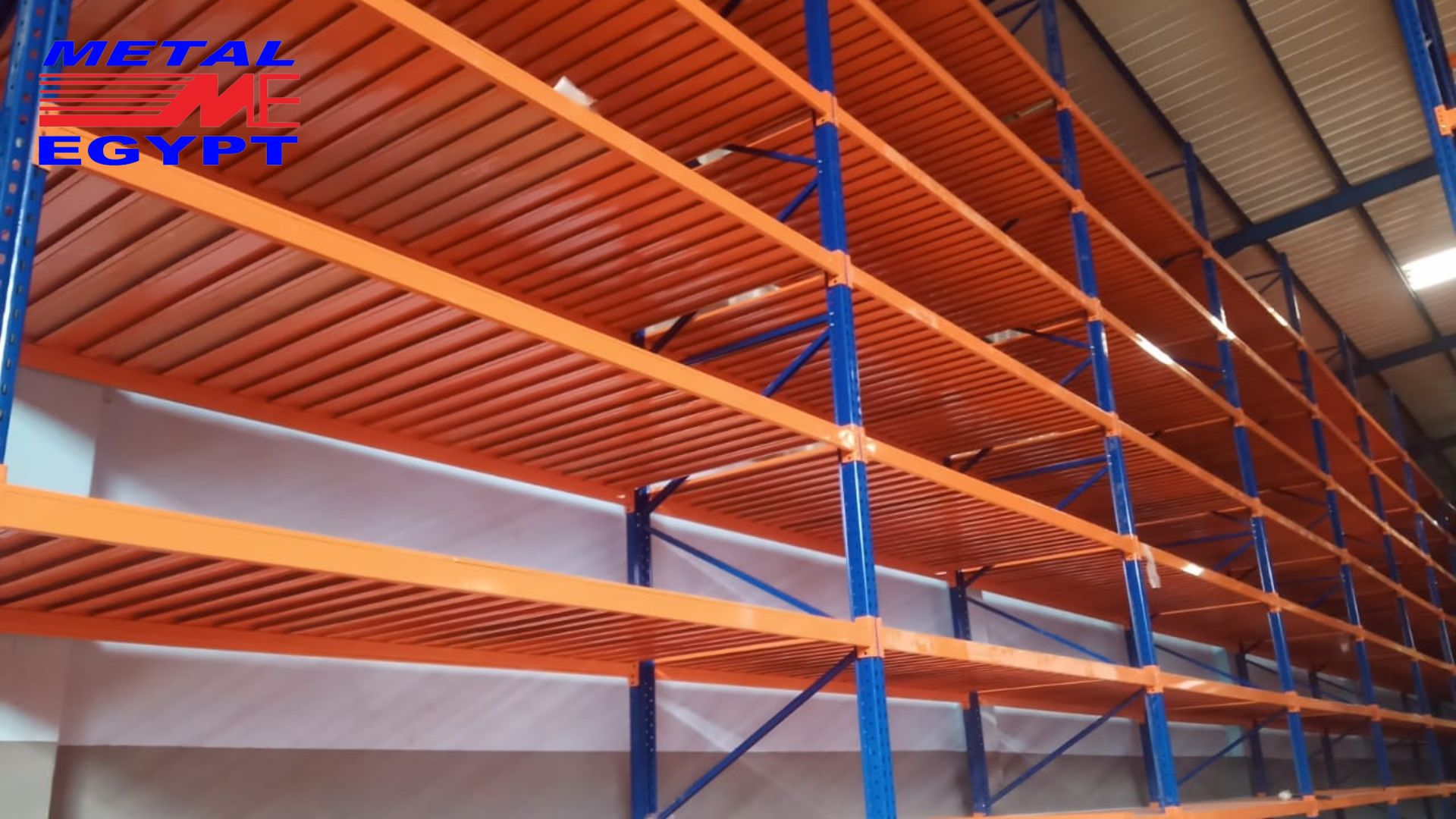 The racking solution includes light-duty selective racks with multiple levels, designed to support loads of up to 100 kg per level and up to 400 kg per bay, depending on configuration. The system features wire cladding shelves, offering flexibility for different storage requirements and improved visibility and ventilation.